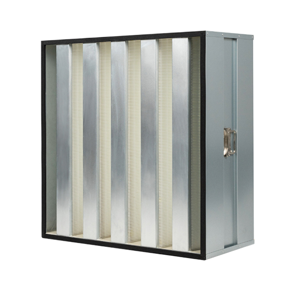 是一種箱式大負荷高效HEPA過濾器,由多片無隔板濾芯組成的V型結構。密封在黑色烤漆鍍鋅鋼板框架內制成。與普通過濾器相比,大大增加了濾料量,確保較低的壓損,從而降...